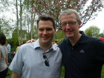 Bürgermeisterkandidat für Stahnsdorf Daniel Mühlner mit den Gästen der JU